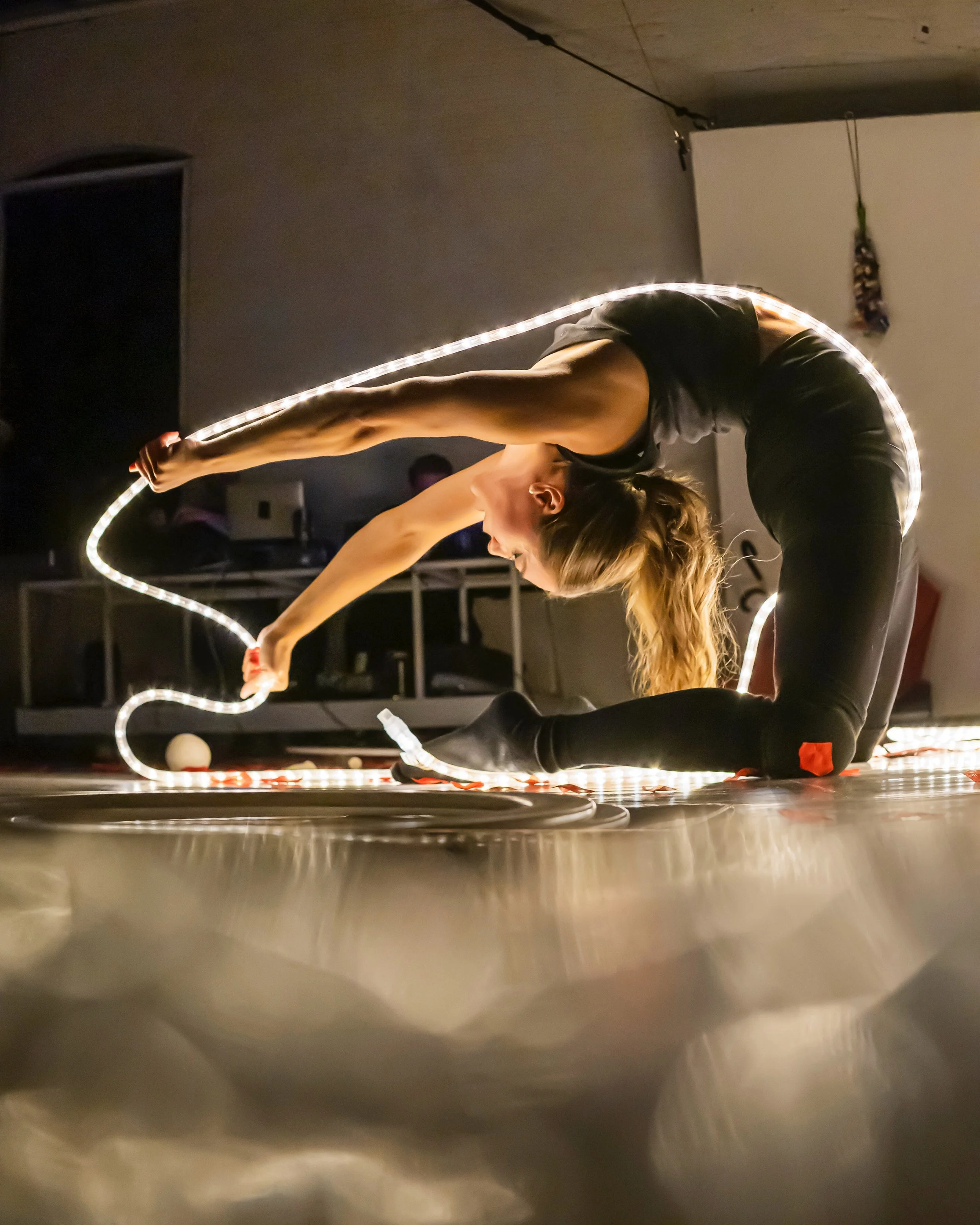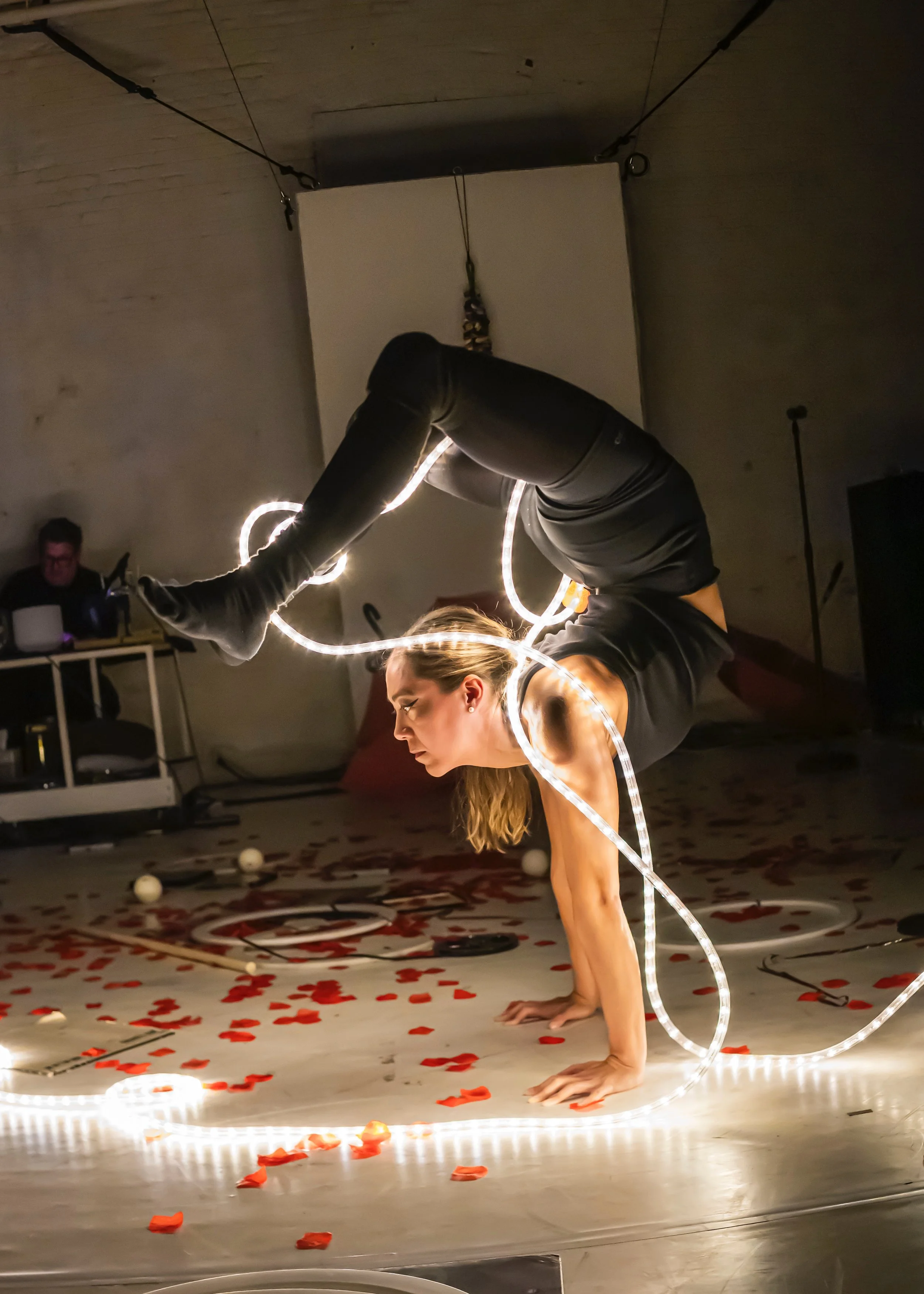 Founded in 2018 by Kyle Driggs and Andrea Murillo, 3AM Theatre was born from a shared fascination of physical storytelling, innovative stage design, and the lighting states often found in early morning hours. Drawing on their shared backgrounds in modern dance and contemporary circus, they began exploring how these disciplines could dissolve boundaries and create transformative experiences.